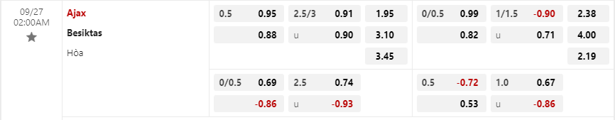 Tỷ lệ kèo Ajax vs Besiktas