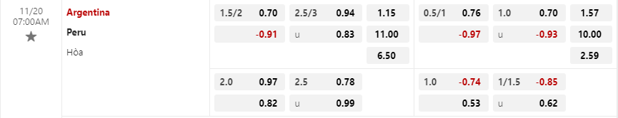 Soi kèo châu Á Argentina vs Peru: 0.91*1.75*0.70