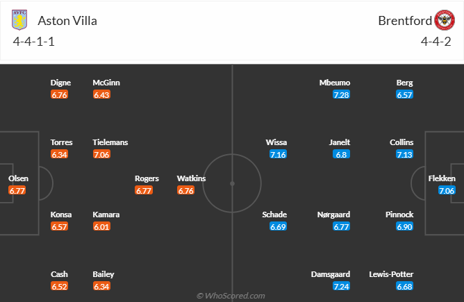 Aston Villa đang chơi rất tệ khi không thể thắng 5 vòng gần nhất, họ để thua 3 trong số đó. Chuỗi trận tệ hại này khiến đội bóng của HLV Unai Emery từ vị trí trong top đầu đã tụt xuống nửa sau bảng xếp hạng. Áp lực với các cầu thủ Aston Villa là rất lớn và họ cần chơi quyết tâm hơn để chấm dứt mạch trận kém cỏi này. Chỉ phải tiếp đón Brentford là cơ hội tốt để Aston Villa có được chiến thắng để cải thiện thứ hạng của mình và nhiều khả năng đội bóng chủ nhà sẽ đạt được mục đích.