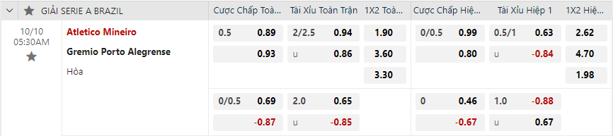 Soi kèo châu Á Atletico Mineiro vs Gremio