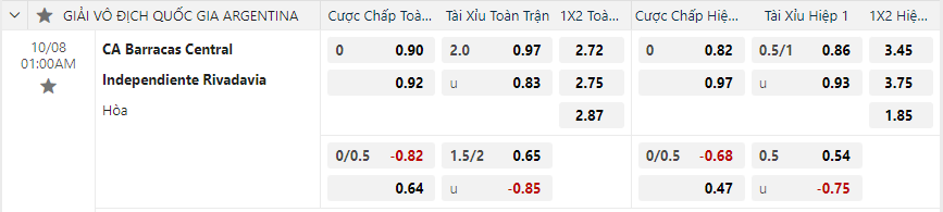 Soi kèo châu Á Barracas Central vs Independiente Rivadavia
