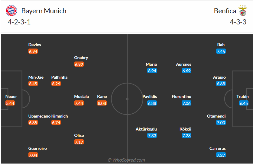 Bayern mới chỉ có 3 điểm sau 3 lượt đấu, họ thắng rất đậm lượt trận đầu tiên nhưng để thua trước Aston Villa và Barcelona ở 2 lượt trận tiếp theo. Với đội bóng hùng mạnh như Bayern thì đây là thành tích không thể chấp nhận được. Kể từ đó thầy trò HLV Vincent Kompany đã thắng liên tiếp 3 trận, ghi 12 bàn thắng và không để lọt lưới bàn nào. Với phong độ tốt này thì các cầu thủ Bayern muốn giành chiến thắng trước Benfica tại Champions League để cải thiện thứ hạng của mình. Nhiều khả năng đội bóng nước Đức sẽ chơi cẩn thận ở trận đấu này và đạt được mục đích.