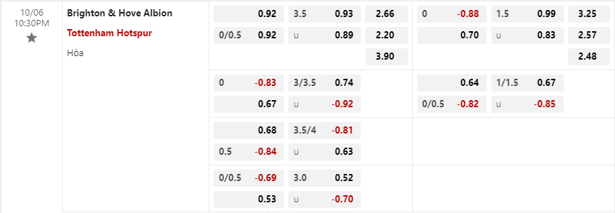 Tỷ lệ kèo Brighton vs Tottenham Hotspur