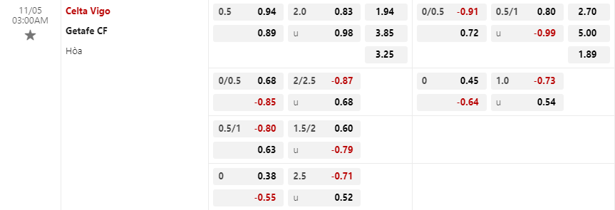 Tỷ lệ kèo Celta Vigo vs Getafe