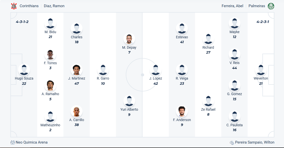 Palmeiras đang là đương kim vô địch của Brazil, mùa bóng năm nay đội bóng của HLV Abel Ferreira muốn bảo vệ ngôi vương nhưng những gì họ thể hiện chưa thể khiến người hâm mộ hài lòng. Họ để hoà  2/3 vòng gần nhất và tụt xuống vị trí thứ 2 trên bảng xếp hạng. Các cầu thủ Palmeiras muốn ngay lập tức trở lại mạch chiến thắng để đua vô địch nên khi đến làm khách trên sân của Corinthians thì 3 điểm là điều duy nhất họ hướng đến. Trước đối thủ đang đứng trong nhóm cuối bảng thì nhiều khả năng Palmeiras sẽ có được 3 điểm trận này.
