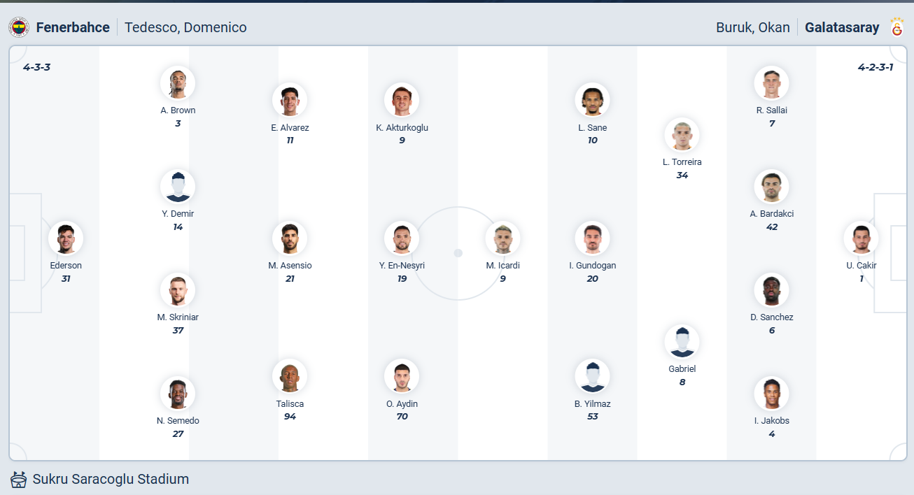 Fenerbahce tiếp tục chỉ đứng thứ 2 mùa giải trước và họ chưa thể lên ngôi vô địch do Galatasaray quá xuất sắc. Mùa giải năm nay đội bóng của HLV Domenico Tedesco quyết làm tốt hơn, họ thắng cả 5 vòng đấu gần nhất để bây giờ chỉ còn kém Galatasaray 1 điểm trên bảng xếp hạng. Với phong độ đó các cầu thủ Fenerbahce đặt quyết tâm giành chiến thắng trước đối thủ cạnh tranh trực tiếp để chiếm ngôi đầu bảng. Đây không phải trận đấu dễ dàng nhưng nếu tận dụng tốt các cơ hội thì đội chủ nhà sẽ đạt được mục đích.