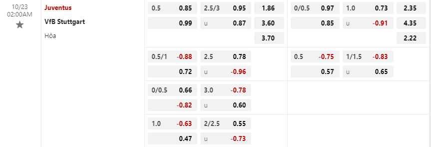 Soi kèo hiệp 1 Juventus vs VfB Stuttgart