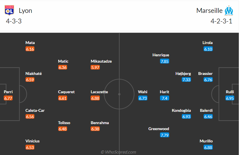 Marseille chỉ đứng thứ 8 mùa giải trước, họ bổ nhiệm HLV Roberto De Zerbi vào mùa hè và đang chơi rất ấn tượng ở những trận đầu tiên của mùa giải này. 10 điểm sau 4 trận cùng vị trí thứ 2 là thành tích rất ấn tượng và các cầu thủ Marseille muốn tiếp tục duy trì phong độ này để giữ vị trí như hiện tại trên bảng xếp hạng. Đến làm khách trên sân của Lyon vào thời điểm này không phải quá khó khăn, nhất là khi Marseille đang có lực lượng tốt. Nhiều khả năng đội khách sẽ có 3 điểm ra về.