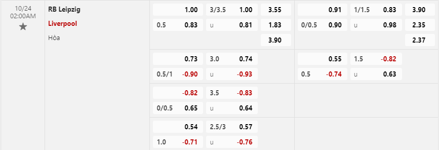 Soi kèo hiệp 1 RB Leipzig vs Liverpool