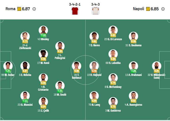 Roma đang thể hiện bộ mặt rất khác mùa này so với những gì họ có mùa trước, đội bóng của HLV Gian Piero Gasperini đã vươn lên vị trí đầu bảng sau 2 chiến thăng ở 2 vòng gần nhất. Đây là bất ngờ nho nhỏ của Serie A và các cầu thủ Roma muốn duy trì vị trí này càng lâu càng tốt để có thể nghĩ đến chức vô địch vào cuối mùa. Muốn làm được điều đó thì Roma cần giành chiến thắng trước Napoli trong trận cầu tâm điểm ở vòng đấu thứ 13 này. Trận đấu sẽ rất khó khăn nhưng khả năng phong độ tốt sẽ giúp Roma tận dụng được cơ hội để có 3 điểm trọn vẹn.