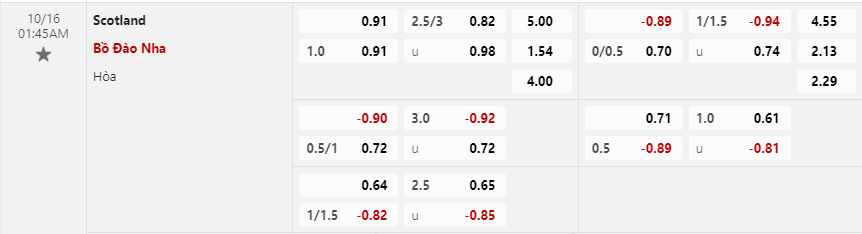 Soi kèo hiệp 1 Scotland vs Bồ Đào Nha