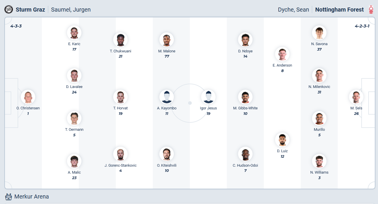 Lượt trận thứ tư vòng League Phase Europa League, Sturm Graz sẽ tiếp Nottingham Forest trên sân nhà với mục tiêu giành chiến thắng để nuôi hy vọng giành vé đi tiếp. Đây không phải trận đấu dễ dàng bởi đội bóng nước Anh được đánh giá cao hơn.