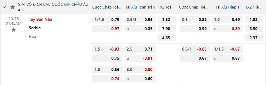 Soi kèo hiệp 1 Tây Ban Nha vs Serbia